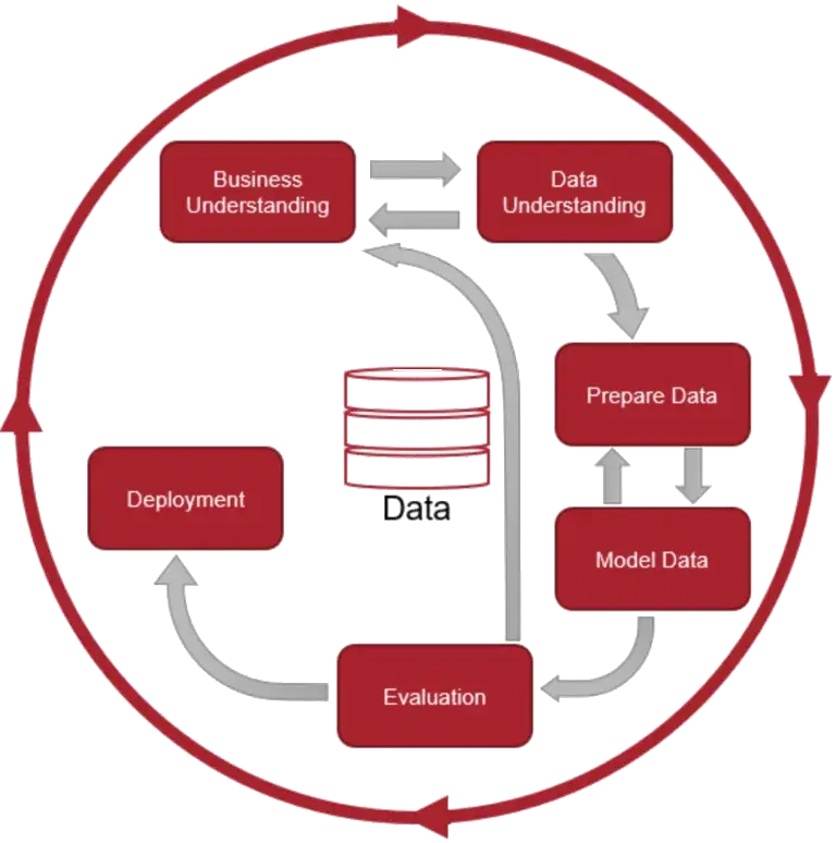 Dans nos approches d’analyse des données, nous nous appuyons sur des méthodologies éprouvées pour garantir des résultats fiables et significatifs. L’une des méthodes centrales que nous utilisons est le CRISP-DM, qui signifie Cross-Industry Standard Process for Data Mining (Processus Standard Inter-Industries pour l’Exploration de Données). Cette méthodologie, largement reconnue dans le domaine de l’analyse des données, offre un cadre structuré et itératif pour guider nos projets d’analyse.